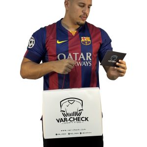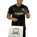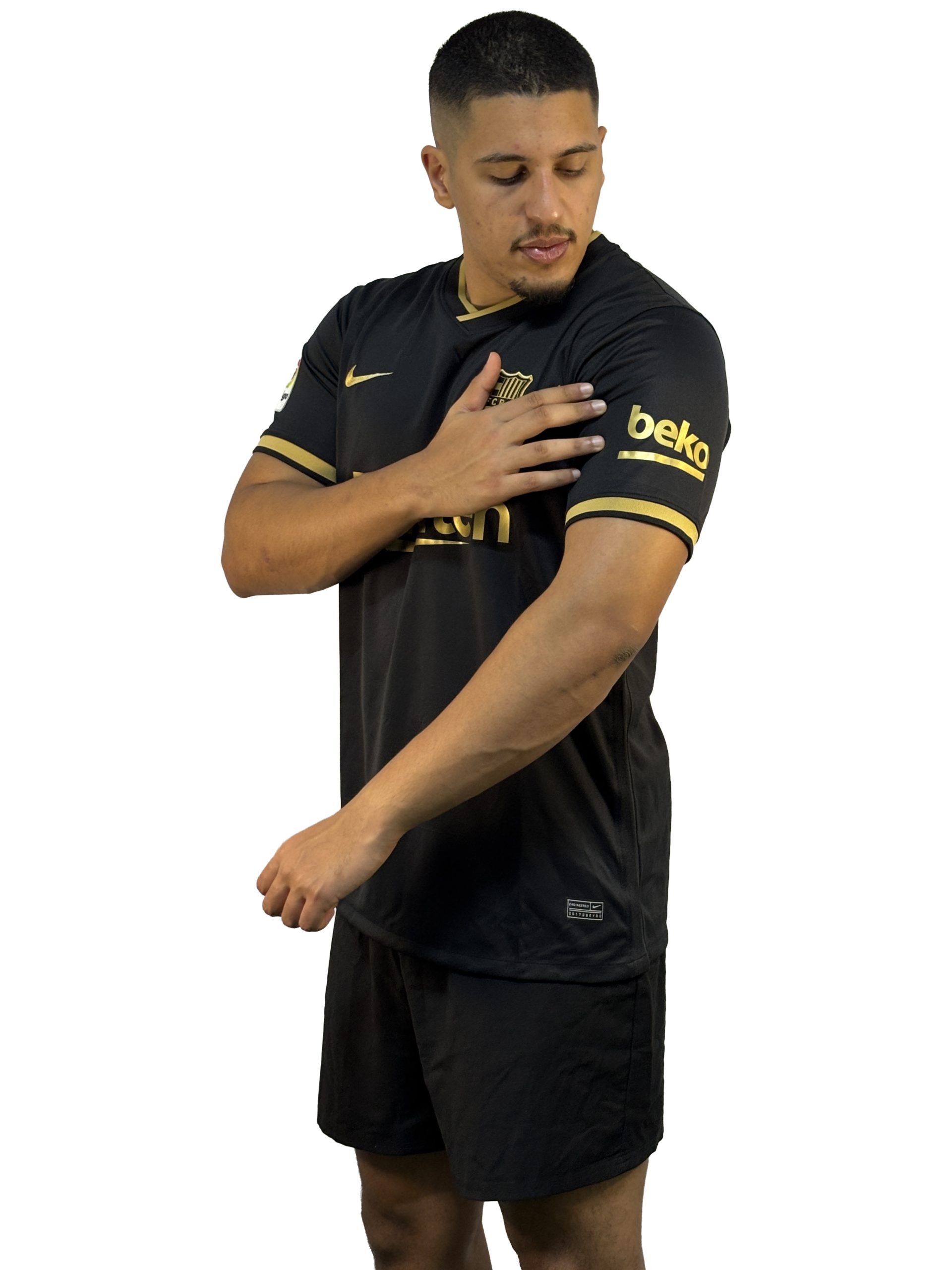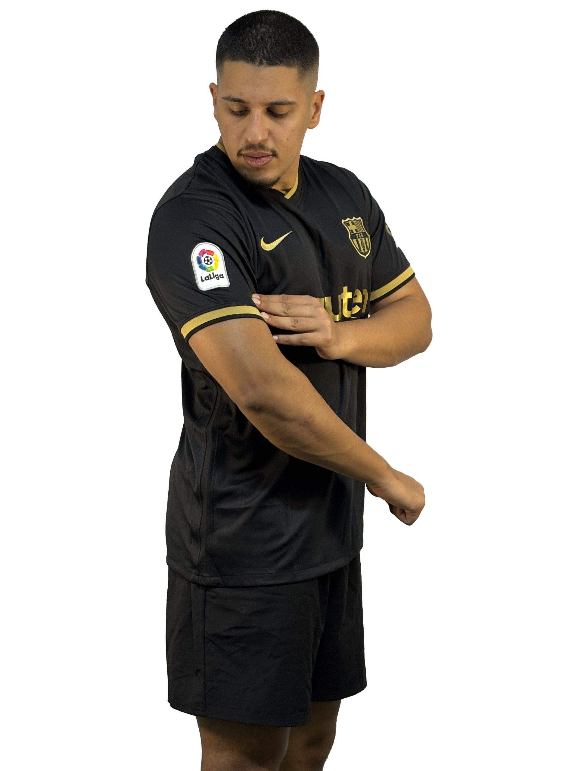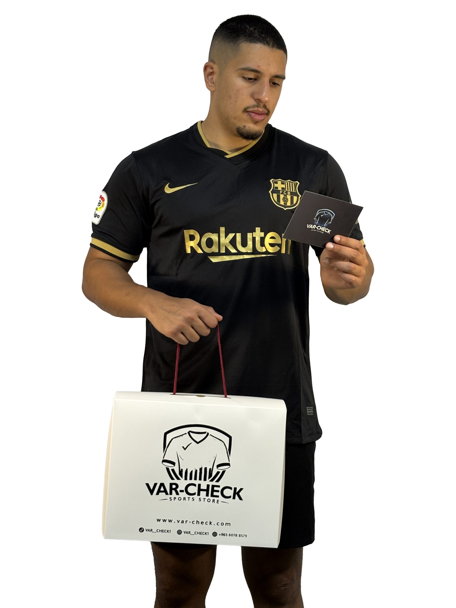 تيشيرت برشلونة كلاسيك لموسم 20/21، يتضمن جميع شعارات الدوري الإسباني (لا ليغا).
