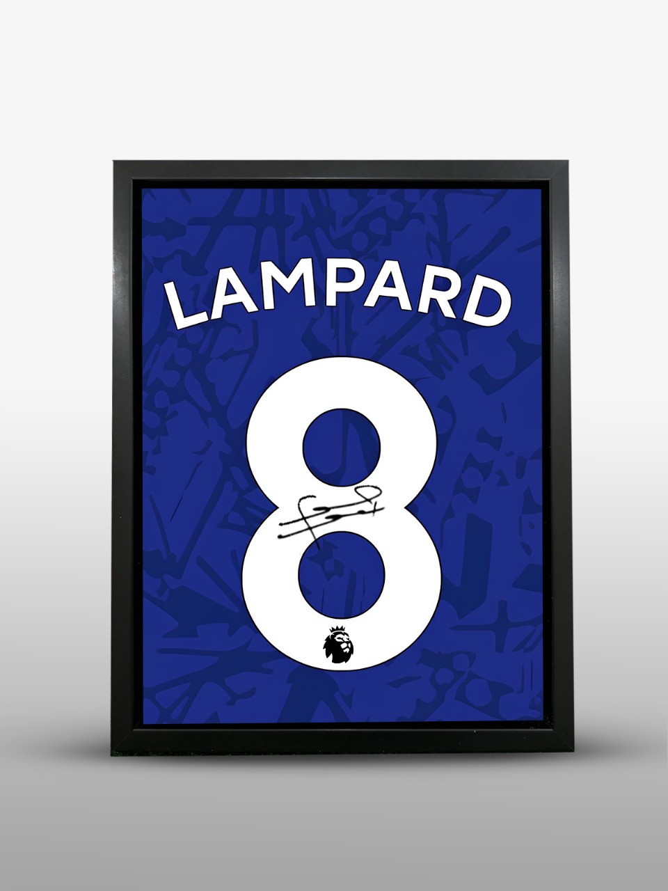 Print of the player’s name and number, Frank Lampard, with his signature on the board.
